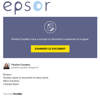Vous allez recevoir par email une invitation à signer les documents de souscription à Epsor :